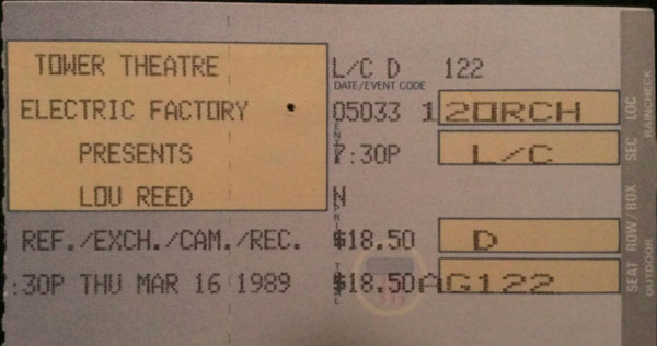 I only saw Lou Reed once, on tour for his New York album. The Feelies opened up the show at the Tower Theatre in Philadelphia. I remember when Lou and his band came out, he said they would be playing the whole album, in order, start to finish, so don’t bother yelling out any song titles. That was kind of unexpected for me but I figured, hey, it’s Lou Reed. He can do whatever the fuck he wants.